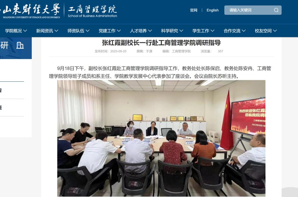 2023年9月18日,副校长张红霞赴工商管理学院调研指导工作,座谈会上,苏昕详细介绍了学院本科教学的基本情况和专业优化调整的工作思路,并汇报了学院本科教育教学审核评估的准备与开展情况。赵世民表示本科教育教学审核评估对深化学院教育教学改革具有重要意义,全院上下定会深刻领会,通力合作,全力以赴。陈保启指出本科教育教学审核评估是对学院人才培养质量的检阅和展示,应以此为契机,推动专业培养方案、课程大纲、教学案例库等全面升级。