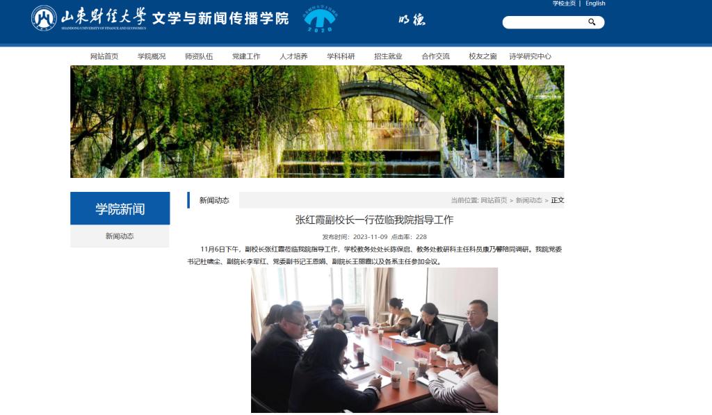 2023年11月6日下午,副校长张红霞莅临文学与新闻传播学院指导工作。张红霞对学院教育教学工作给予了充分肯定。她强调,学院班子成员要鼓足干事创业的精气神,始终保持锐意进取、敢为人先、迎难而上的奋斗姿态,立足大学办学之本,进一步加强师资建设,提升教学能力,推动本科教育教学高质量发展。陈保启就各专业面临的问题及发展规划进行指导。他指出,本科教育教学评估是当前学校和学院的重要工作,学院要充分准备,提升教学规范性。人才培养方案事关学校发展,要总结目前人才培养取得的成就,发现新问题,为今后的人才培养工作打好基础,同时也要提升培养层次,立足长远,顺应时代发展要求。