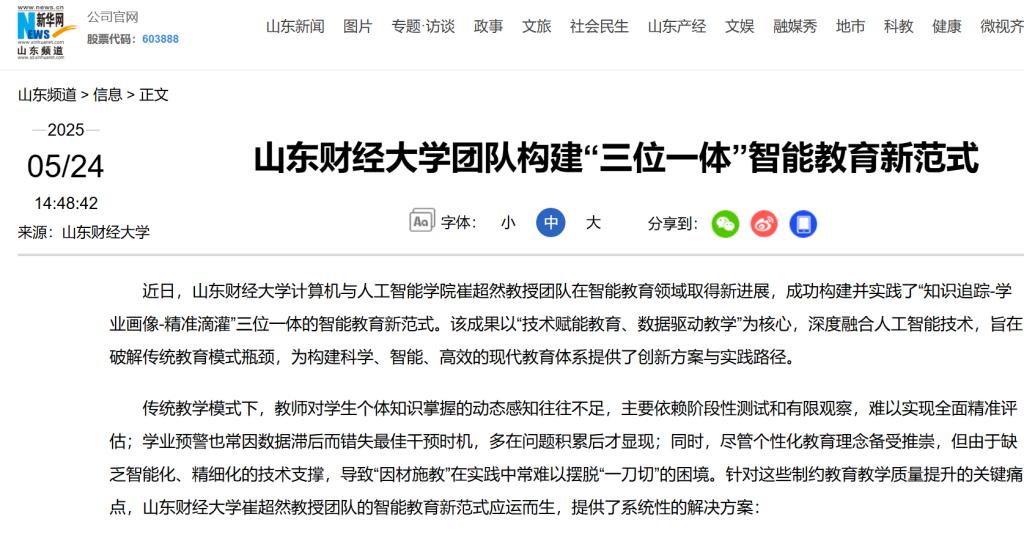 该成果已形成“理论模型-技术平台-实践案例”的完整体系。团队成员先后主持“教育信息科学与技术(F0701)”类国家自然科学基金面上项目2项、山东省本科教学改革研究重点项目3项,发表高水平论文13篇,获国家发明专利授权6项。该范式已在4所高校、12个专业开展示范应用,累计覆盖学生1.3万余人。实践数据显示,学业预警系统准确率高达80%以上,经干预后学困生比例下降超过30%;在个性化教学模式的帮助下,实验班平均成绩较对照班提高7.5分。该成果同时入选“山东省2024年数字化赋能教育管理信息化建设与应用典型案例”,在高等教育领域产生了广泛的积极影响。