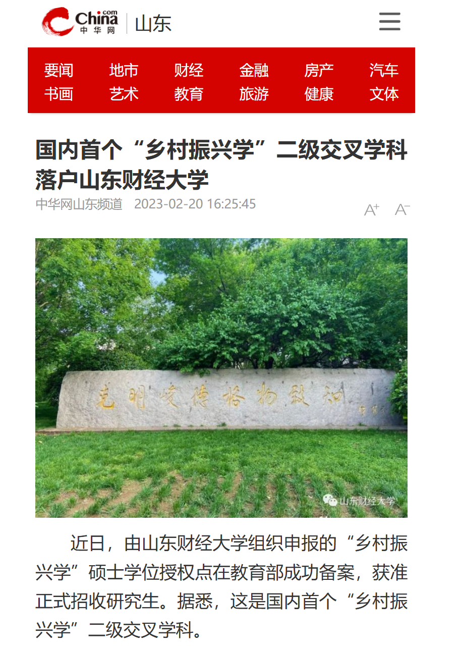 国内首个“乡村振兴学”二级交叉学科落户山东财经大学