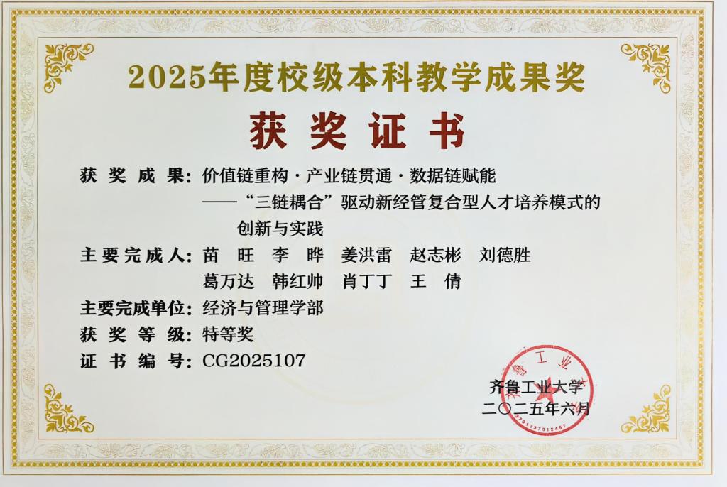 齐鲁工业大学教学成果奖特等奖:价值链重构·产业链贯通·数据链赋能——“三链耦合”驱动新经管复合型人才培养模式的创新与实践