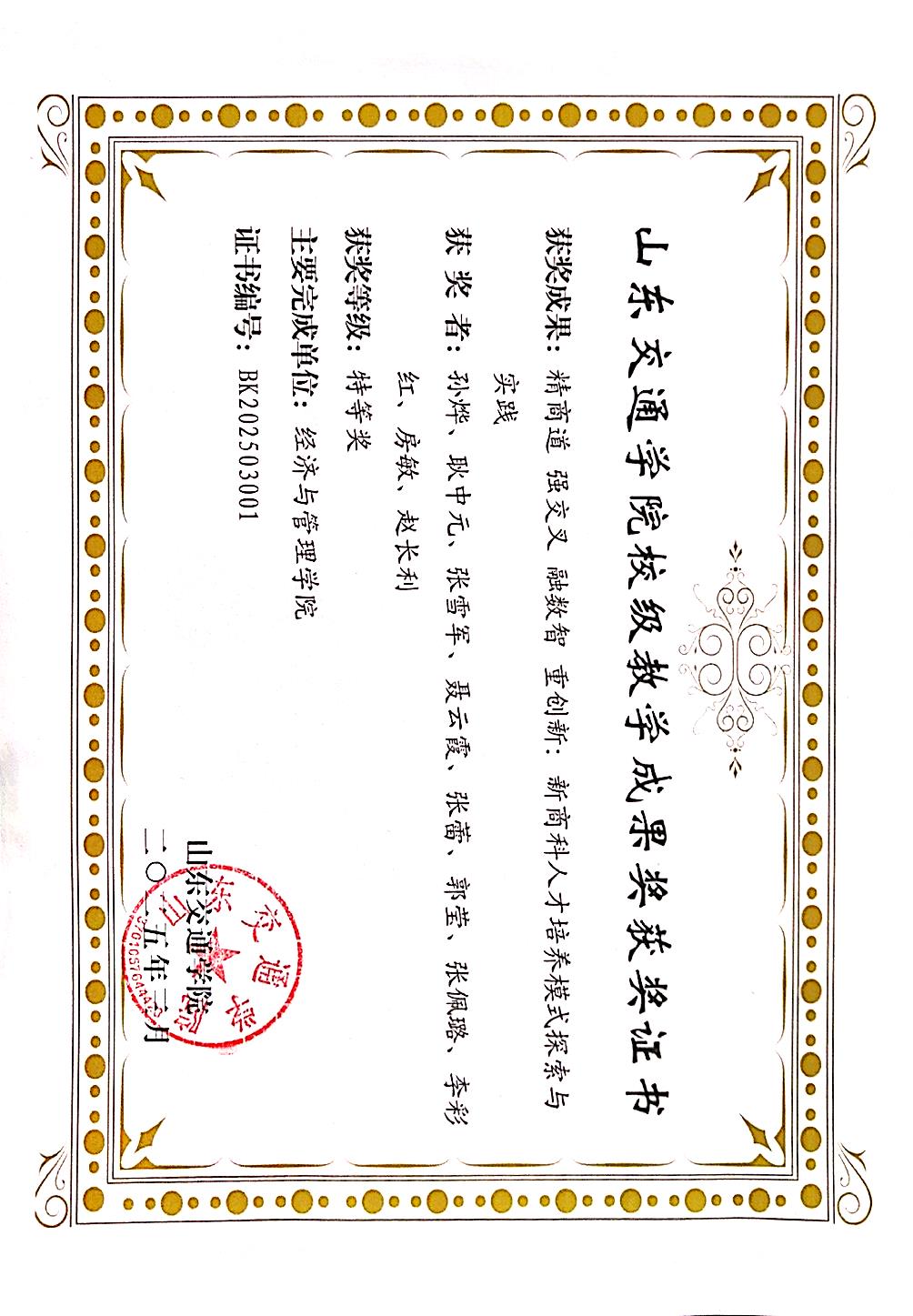山东交通学院教学成果奖特等奖——精商道·强交叉·融数智·重创新:新商科人才培养模式探索与实践