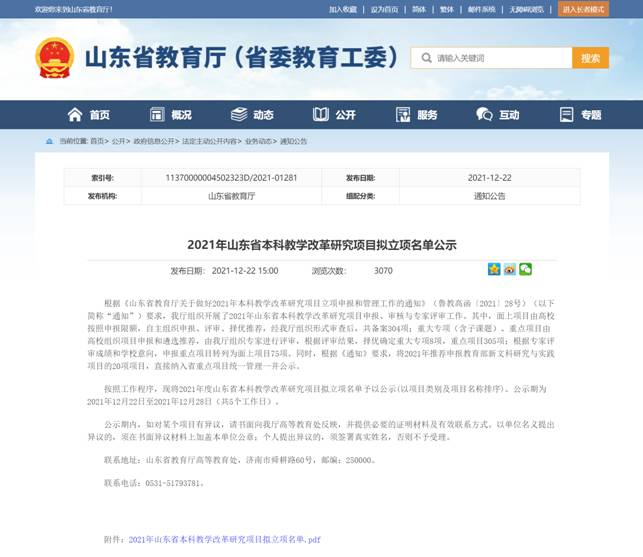 [B2.12]山东省本科教学改革研究面上项目《面上项目数字化服务需求导向的市场营销专业课程体系重构研究》刘侠(第1位次)2021-12-29