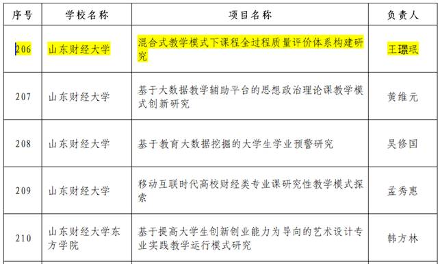 [B2.09]山东省本科教学改革研究面上项目《混合式教学模式下课程全过程质量评价体系构建研究》王璟珉(第1位次)2018-10-18