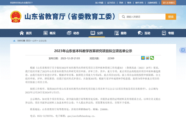 [B2.06]山东省本科教学改革研究重点项目《以场景化综合实验为引领的旅游管理专业实践教学课程体系建设研究》于潇(第1位次)2023-12-29