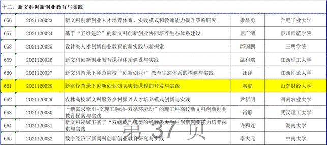 [B2.01]教育部首批新文科研究与改革实践项目《新财经背景下创新创业仿真实验课程的开发与实践》陶虎(第1位次)2021-07-30