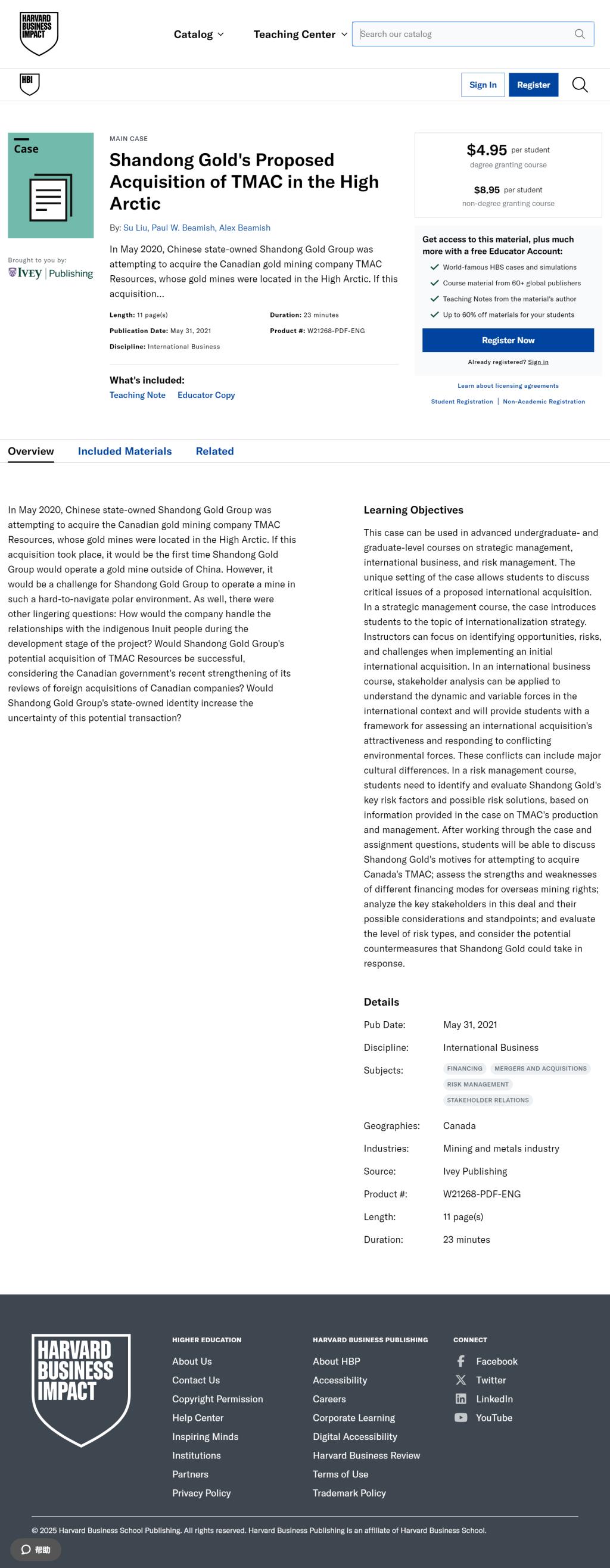 [B5.02]毅伟案例库《Shandong Gold's Proposed Acquisition of TMAC in the High Arctic》2021-05-31