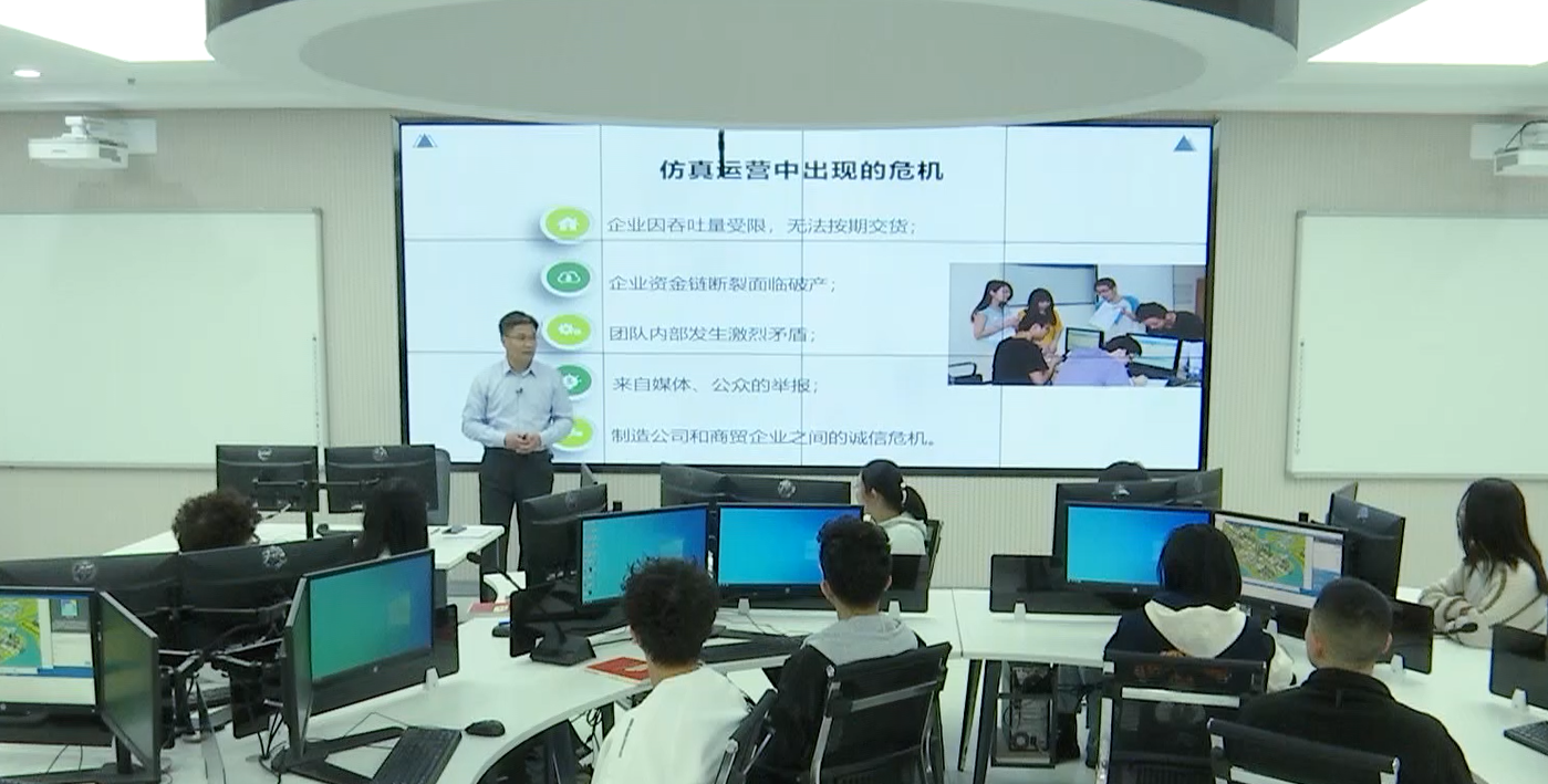 这门课最显著的特点,是把“社会”嵌入校园,把“企业”搬进课堂。“仿真实验课”教学一般连续七天,每次上课人数为100-160人,6-7人组成一个跨专业团队,全身心“沉浸式体验”制造企业、商贸企业、现代服务业和工商、税务、海关、银行等服务机构的不同角色,开展线上模拟经营对抗。期间,并行穿插海报评选、招投标、全英文危机公关、专题辩论、企业形象展示、点钞大赛等多种多样的线下竞争性教学活动。“真实还原现实市场环境,让学生身临其境,指导老师及时引导同学们自主决策、自主学习、融会贯通,过瘾!”很多学生这样说。