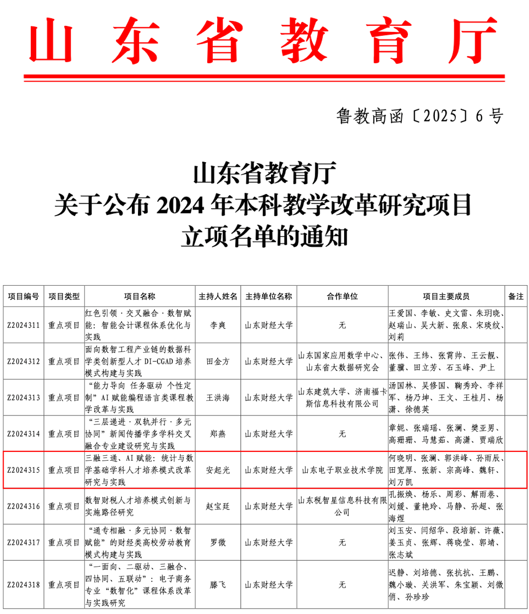 重点项目 | 山东省教育厅 |