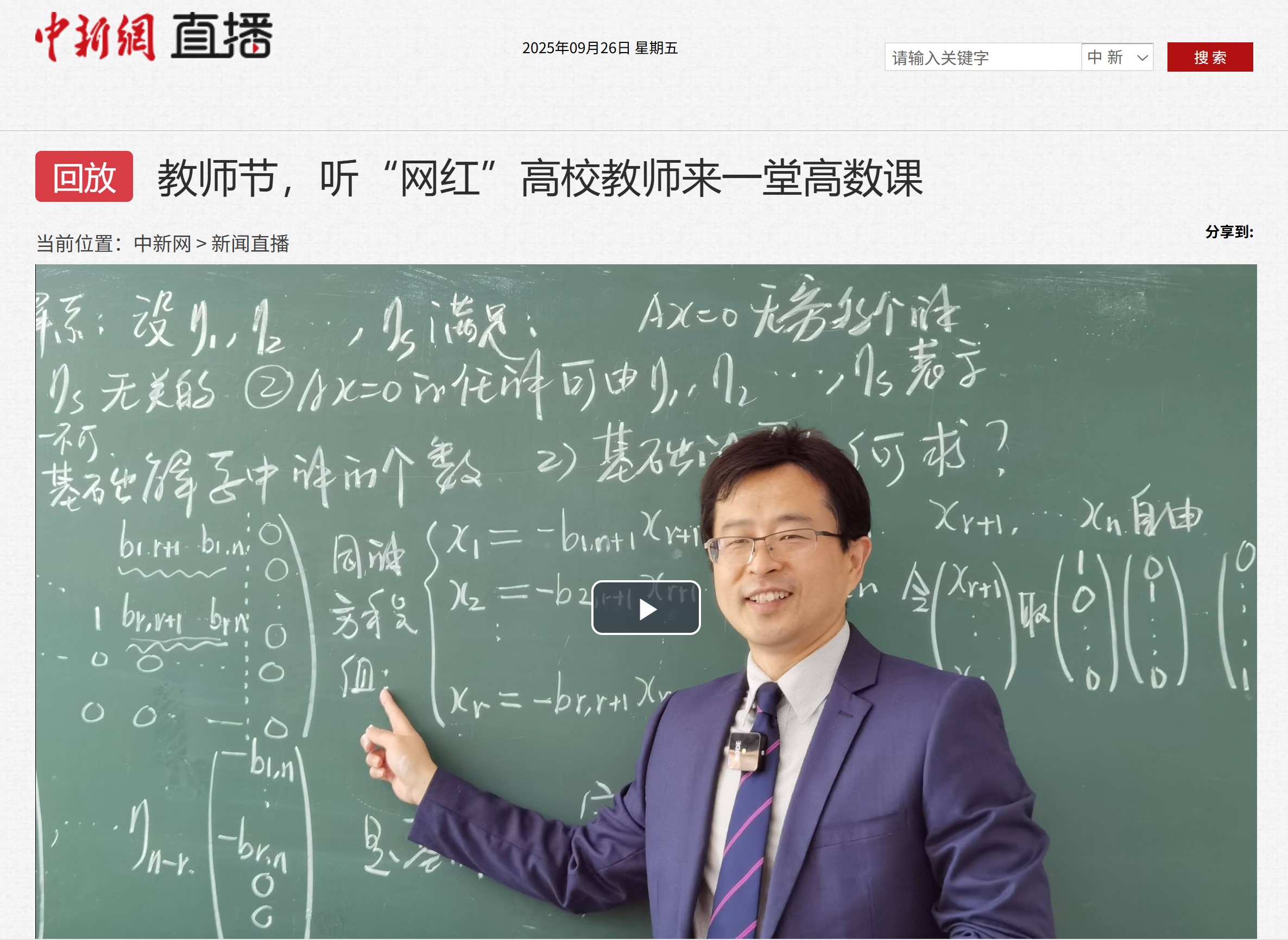 教师节,听“网红”高校教师来一堂高数课,中国新闻网,2021 年