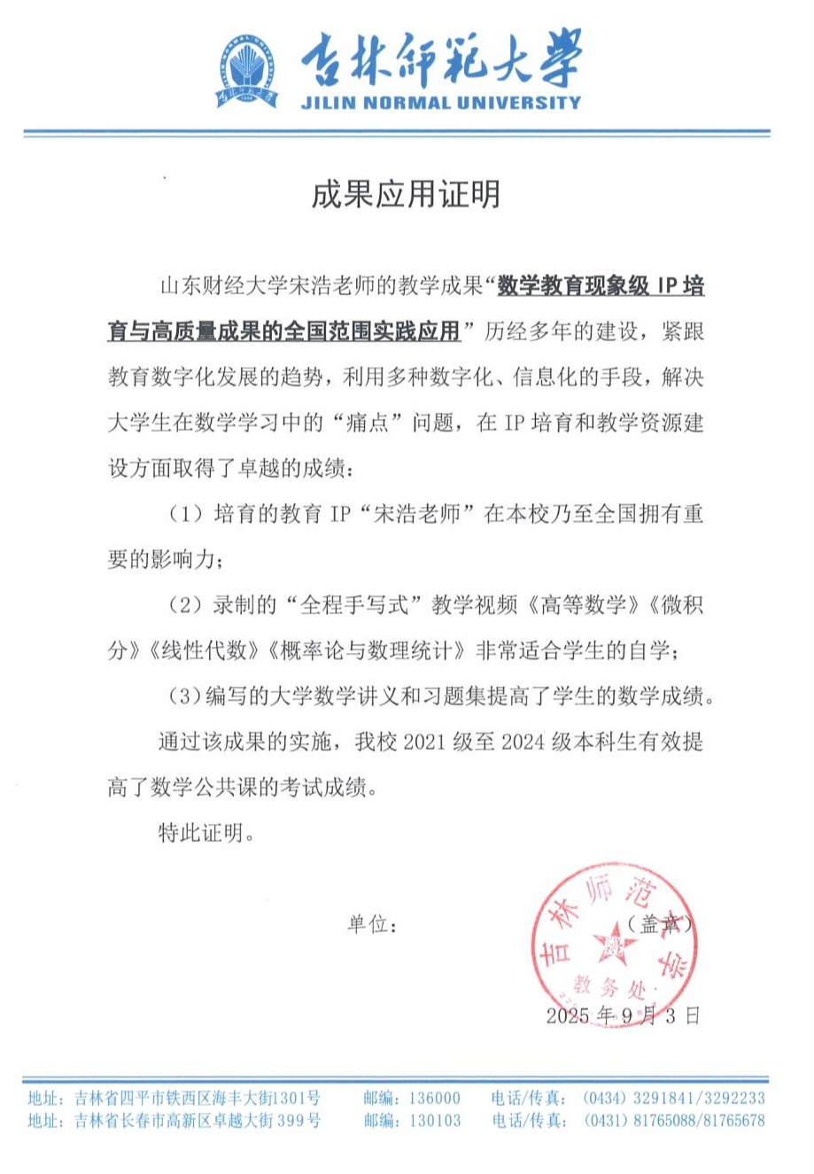 吉林师范大学应用证明
