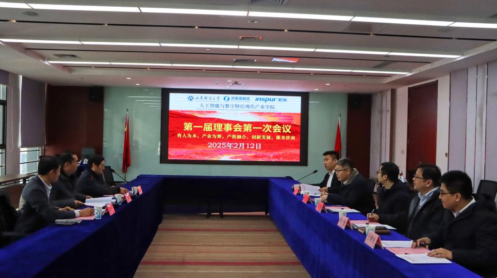 2025年2月12日上午,人工智能与数字财经现代产业学院第一届理事会第一次会议在汉峪金谷A6-4济南高新人力资源产业园济南人力资本产业研究院18楼党建会议室召开。第一届理事会由三方共建单位推荐理事组成,根据事业发展而动态调整。