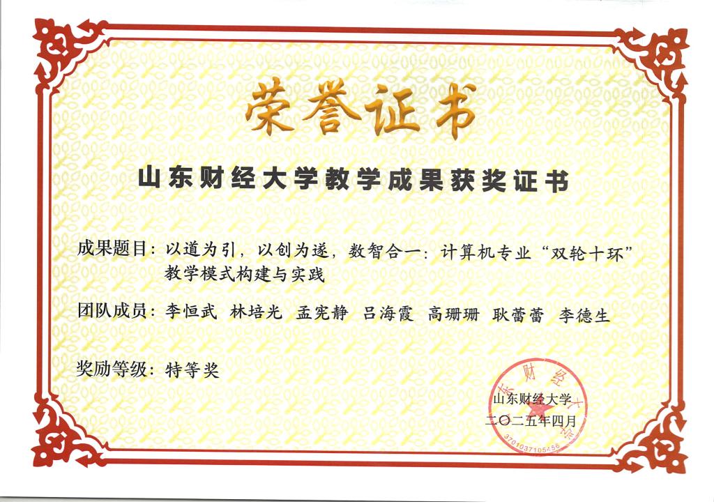 李恒武,林培光,孟宪静,吕海霞,高珊珊,耿蕾蕾,李德生.以道为引,以创为遂,数智合一:计算机专业“双轮十环”教学模式构建与实…[详细]