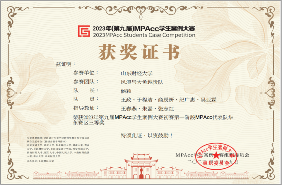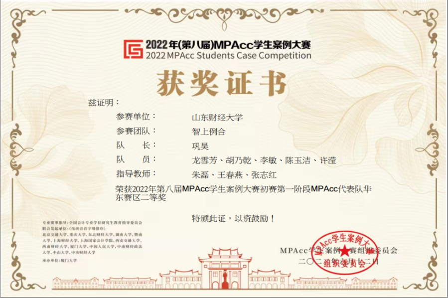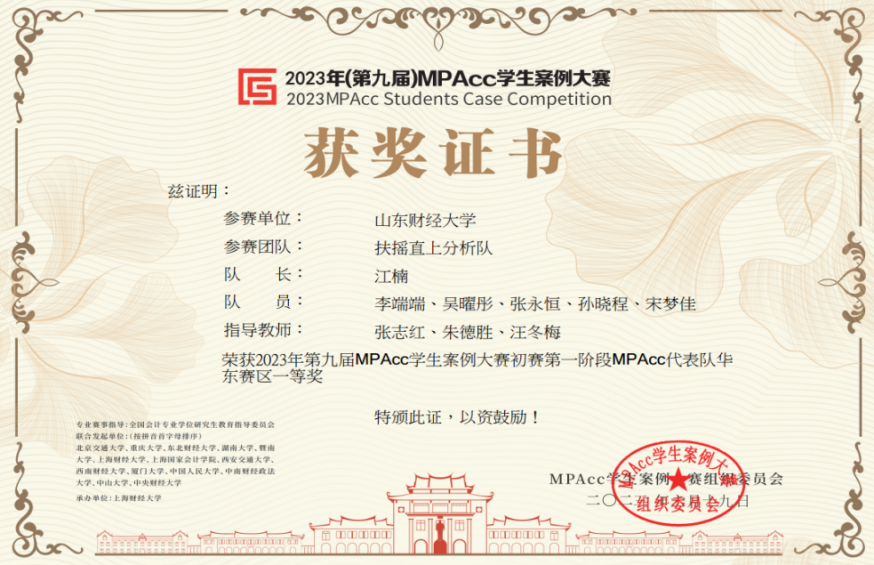 证明材料5:第九届全国MPAcc案例大赛初赛第一阶段华东赛区一等奖