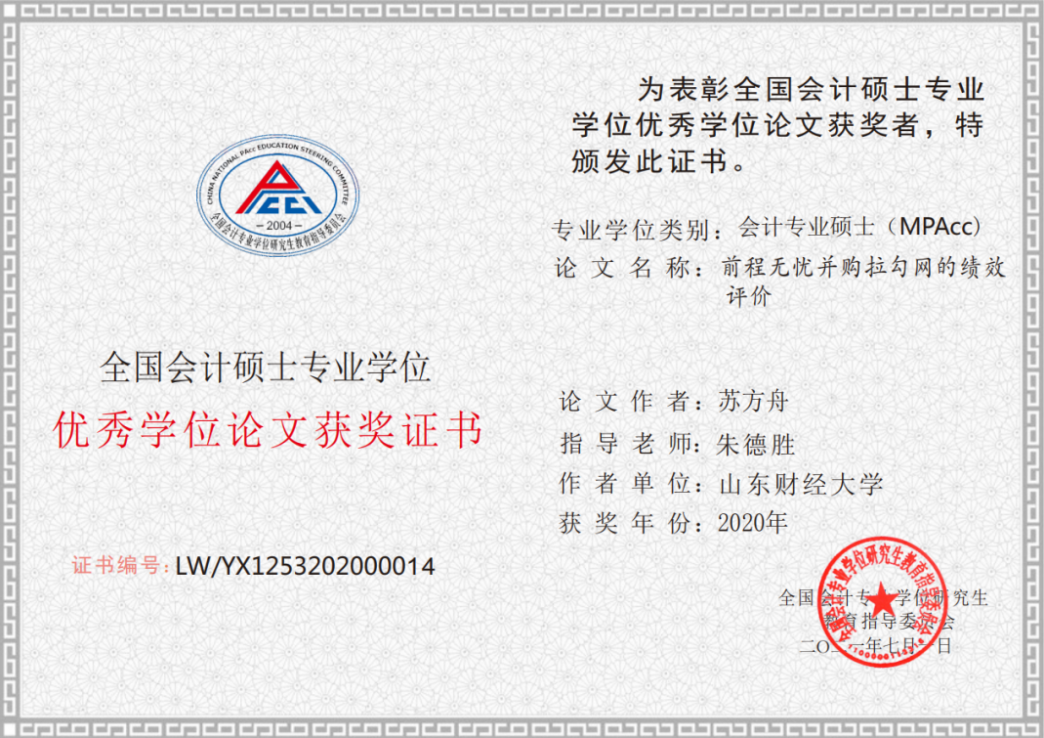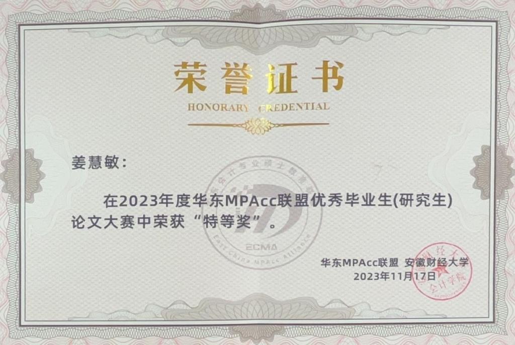 证明材料7:2023年度华东MPAcc联盟优秀毕业生(研究生)论文大赛获特等奖