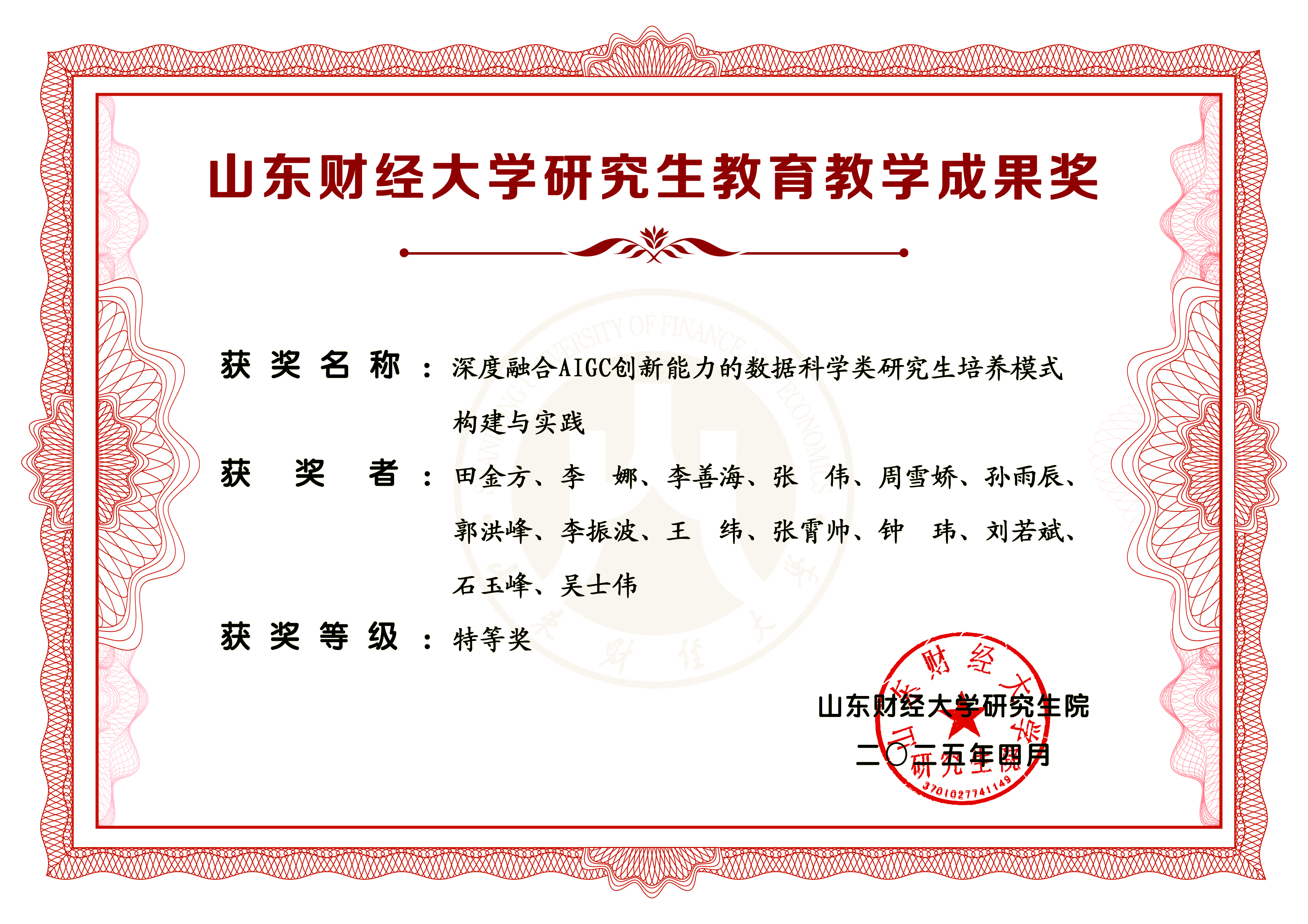 高等教育教学成果奖:竞赛驱动、科教融合——应用经济学研究生交叉创新人才培养改革与实践