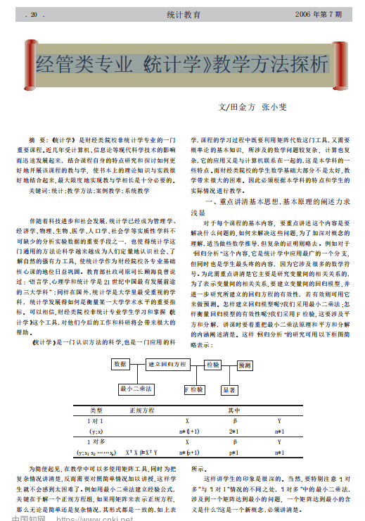《统计教育》:经管类专业《统计学》教学方法探析